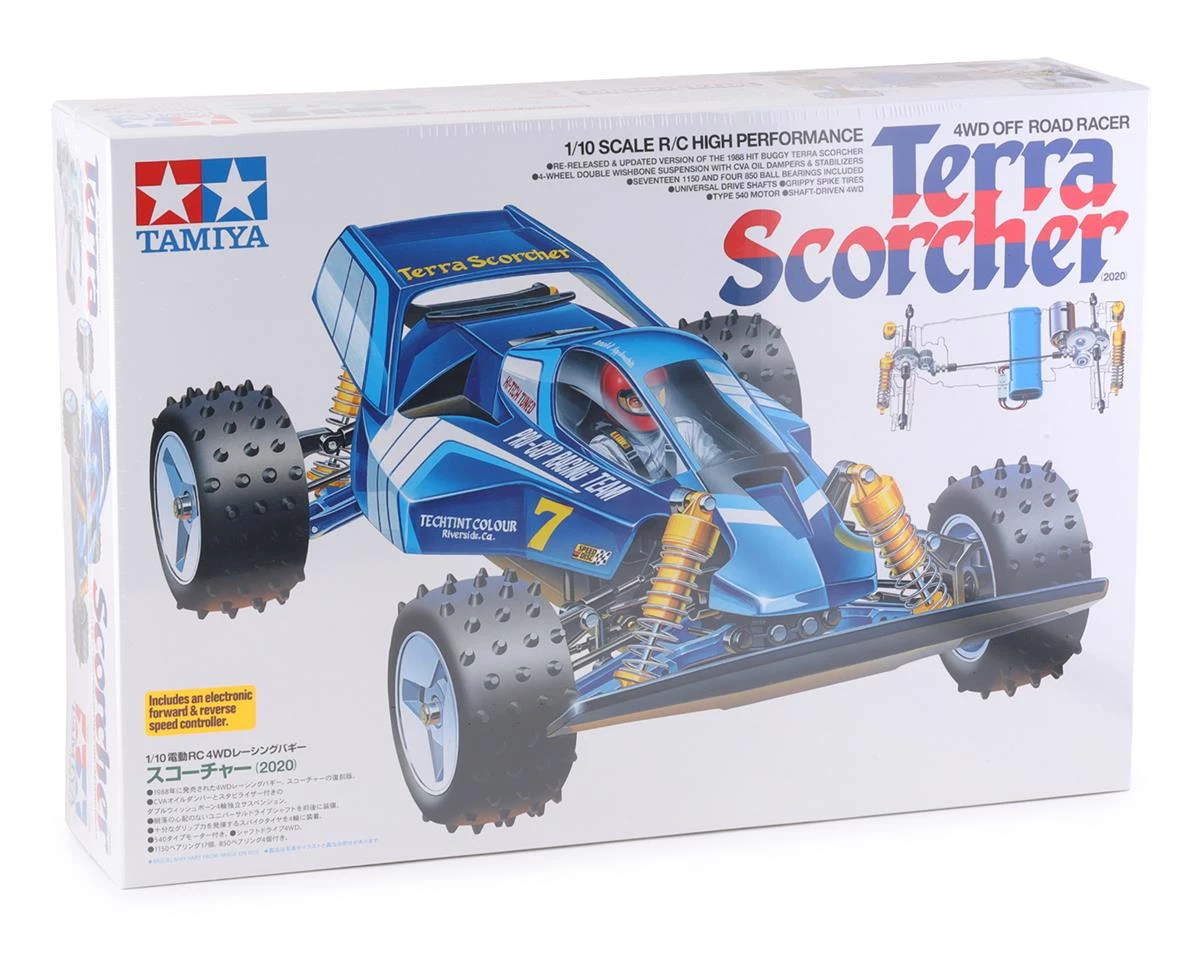 The Tamiya 1/10 Terra Scorcher 2020 4WD Buggy Kit marks the return of a legend. Since 1988, the Terra Scorcher has been well loved by Tamiya collectors and RC enthusiasts. It now makes a welcome comeback in the shape of this Limited Edition kit with an updated a modern chassis and some slight updates to the decal livery.