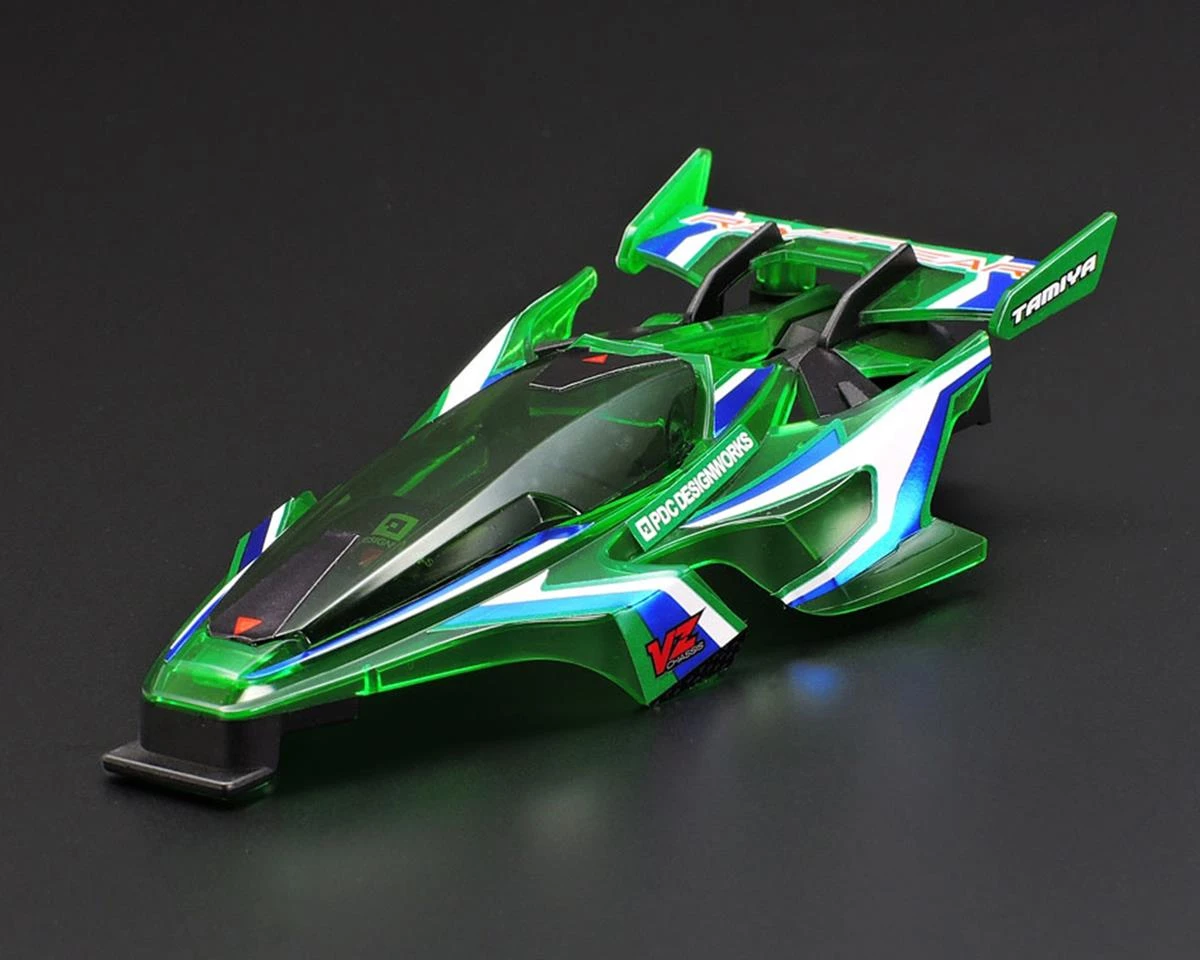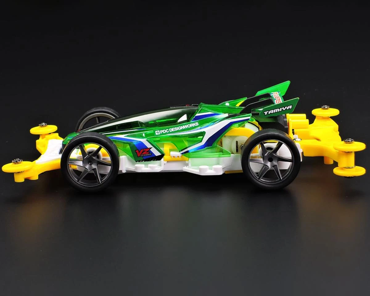The Tamiya 1/32 JR Ray Spear VZ Chassis Mini 4WD Kit depicts a futuristic body design by the same designer who brought you the Dual Ridge Jr. and DCR-01. The original body is mounted on the quick and adaptable VZ chassis.