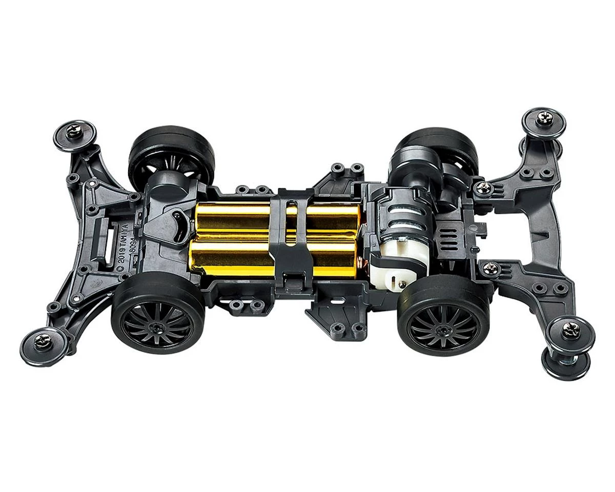 The VZ chassis is a compact and lightweight design that features reinforced designs for bumper, rear stay base and more ensuring that it has the durability and flexibility to withstand racing accidents. It is also a rather adaptable unit that lets its owner make numerous updates to the setup. Low friction 620 plastic bearings are molded in POM and maximize drive efficiency, while the chassis and A parts are molded in ABS. This chassis features a gear ratio of 3.5:1.