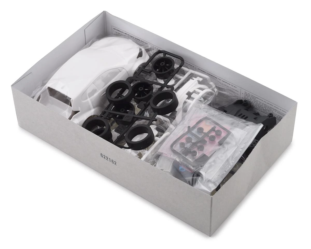 - The 3-door body is molded in White ABS, and captures features such as the prominent grille, bulging rear fenders and roof rear spoiler. Dedicated metallic stickers are included to decorate the model.