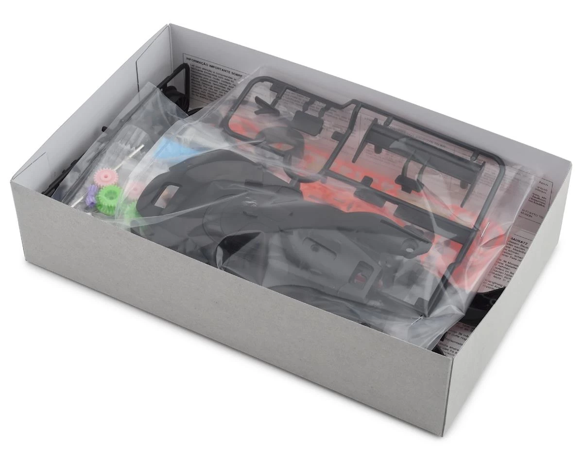 - 1/32 scale Mini 4WD model snap-together-assembly kit. Length: 156mm, width: 97mm.