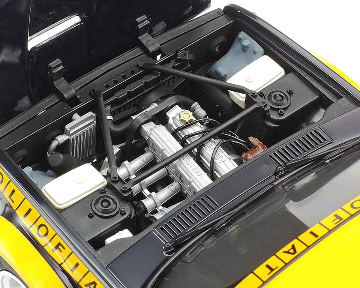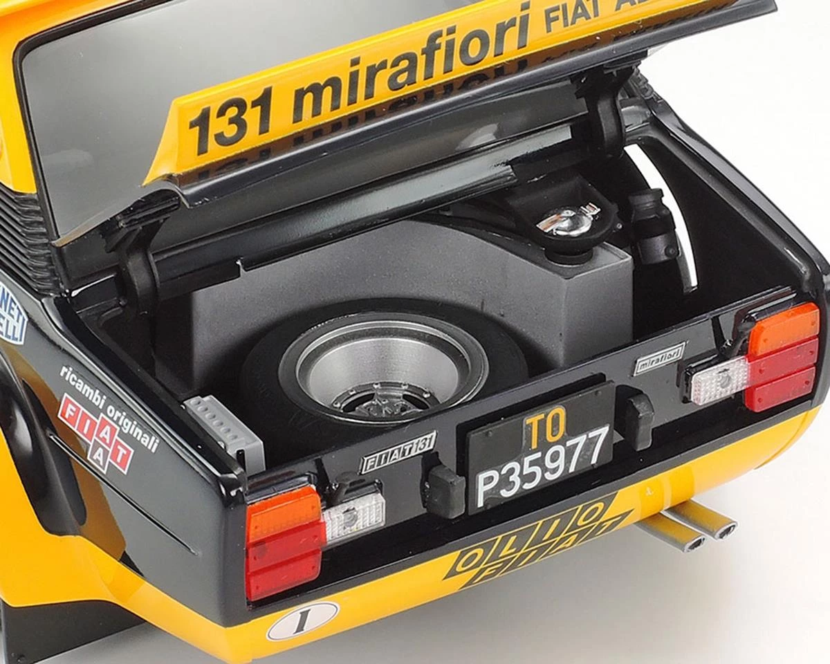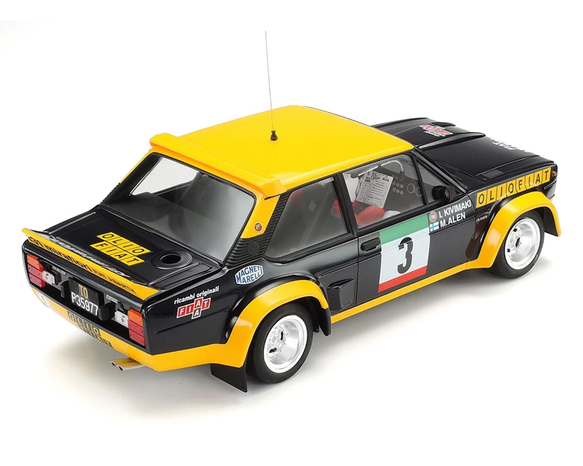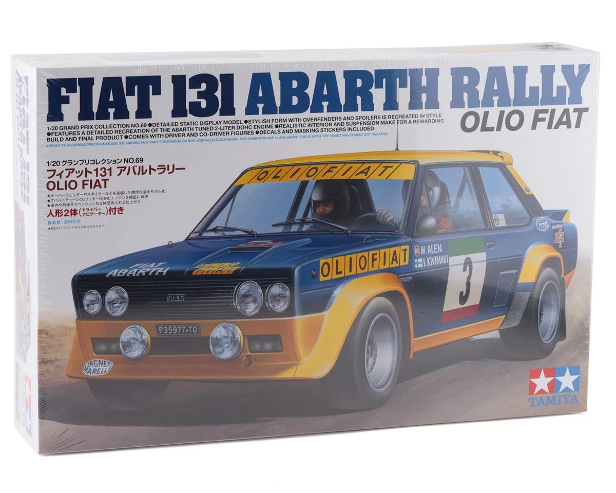 The Tamiya 131 Abarth Rally Olio Fiat 1/20 Model Kit recreates the Olio Fiat navy blue and yellow liveried 131 Abarth, which was the WRC rally champion in 1977. The real car was an Abarth-tuned version of the Fiat 131 Mirafiori with a 215hp 2-liter engine; it was extremely lightweight thanks to extensive use of FRP and aluminum across its body. It made a rally debut in 1976 and took titles in ’77, ’78 and ’80. This 2020 edition kit is the first re-issue for the venerable Tamiya kit in 21 years, and the first time with this livery!