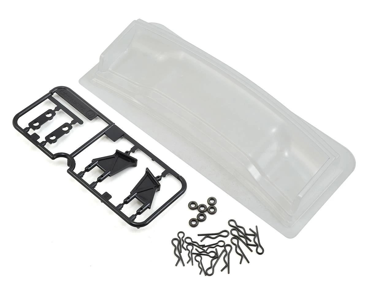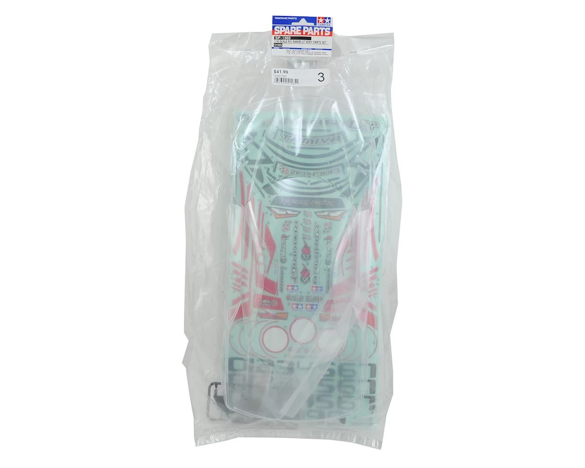 This is the Tamiya 190mm Raikiri GT 1/10 Scale Body Set, in Clear Lexan. The body is an imagination concept by the industrial design company Znug Design, Inc. based in Japan. The body comes complete with vinyl stickers to complete the window trim, headlights, tail lights and other livery markings. A handy window masking seal is also included for easy masking of the windows when painting your body.