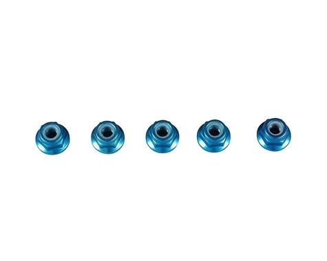 This is a pack of five Tamiya Blue Anodized 4mm Aluminum Locknuts. These aluminum wheel nuts not only reduce weight but also enhance overall appearance.Â