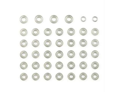 This is a Tamiya Hi-Lift Full Bearing Set. The powerful performance of the R/C High-Lift Chassis can be made more efficient by adding this Ball Bearing Set. Kit-supplied metal bearings (bushings) can all be replaced with precision ball bearings which minimize friction loss during power transmission.
