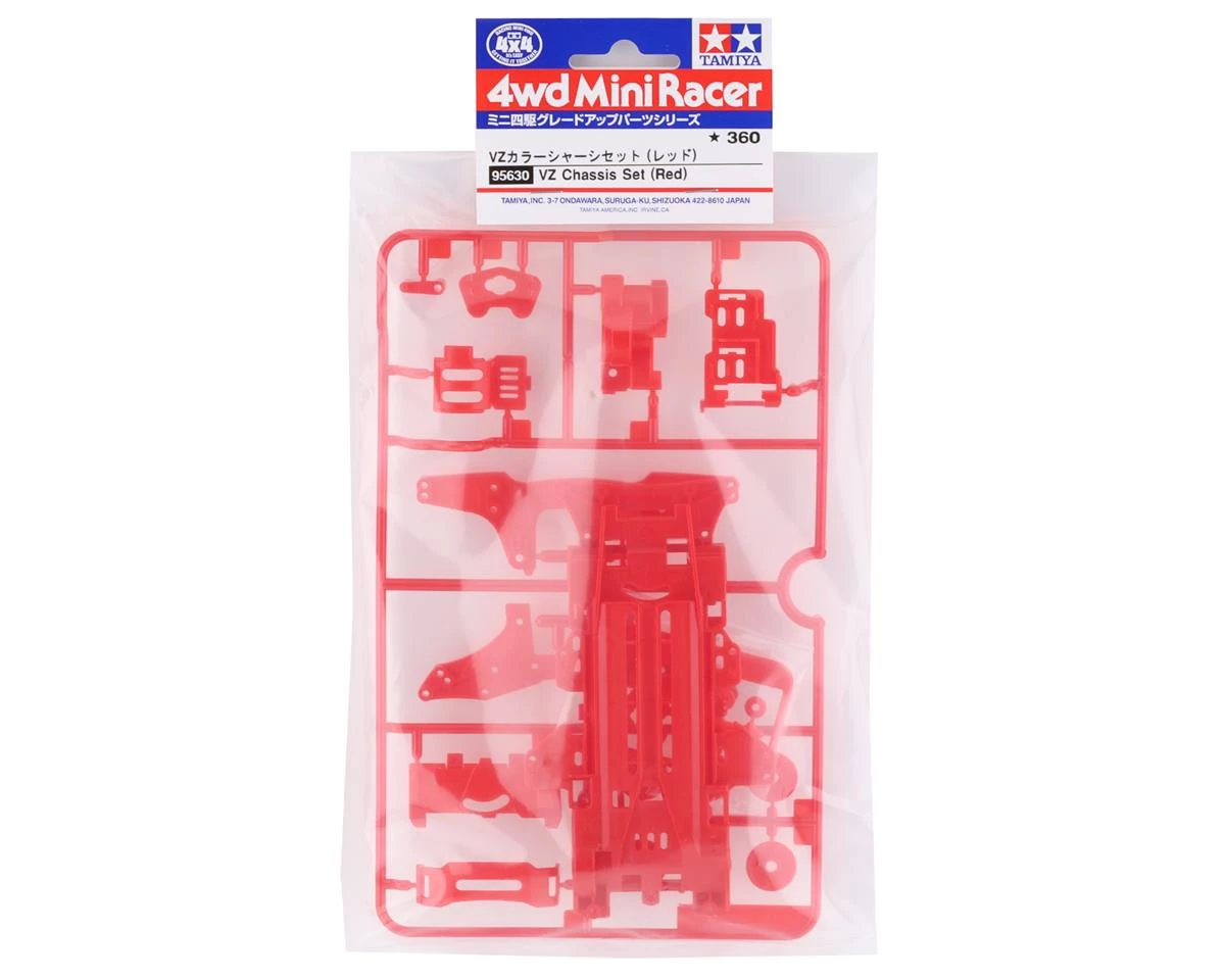 Tamiya JR VZ Chassis Set. This optional ABS chassis and POM plastic bearings is intended for the Tamiya VZ Mini 4WD chassis. Package includes ABS chassis components and POM plastic bearings.