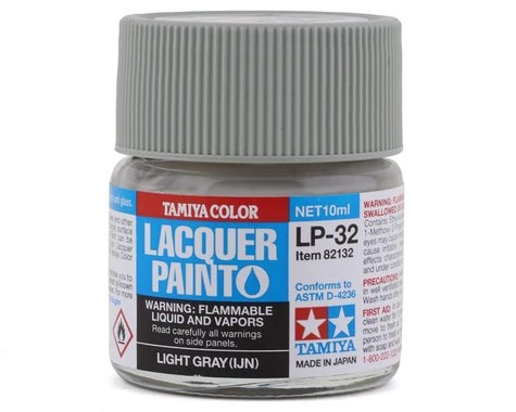 Tamiya LP-32 INJ Light Grey Lacquer Paint. The Tamiya lacquer paints are very versatile and can be used with an airbrush for large areas or a paint brush for fine details. This lacquer will work great as a basecoat for Tamiya enamel paints. Fast drying times allow for efficient painting processes.Â
