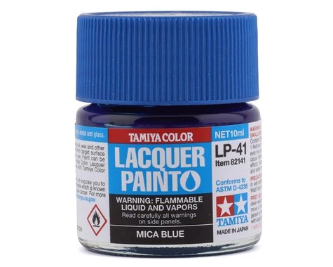 Tamiya LP-41 Mica Blue Lacquer Paint. The Tamiya lacquer paints are very versatile and can be used with an airbrush for large areas or a paint brush for fine details. This lacquer will work great as a basecoat for Tamiya enamel paints. Fast drying times allow for efficient painting processes.Â