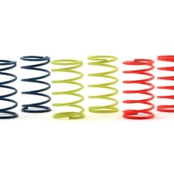 Tamiya On-Road Tuned Spring Set. These are recommended for 4WD and FWD touring cars, as well as rally car applications. Package includes two soft, two medium and two stiff shock springs.
