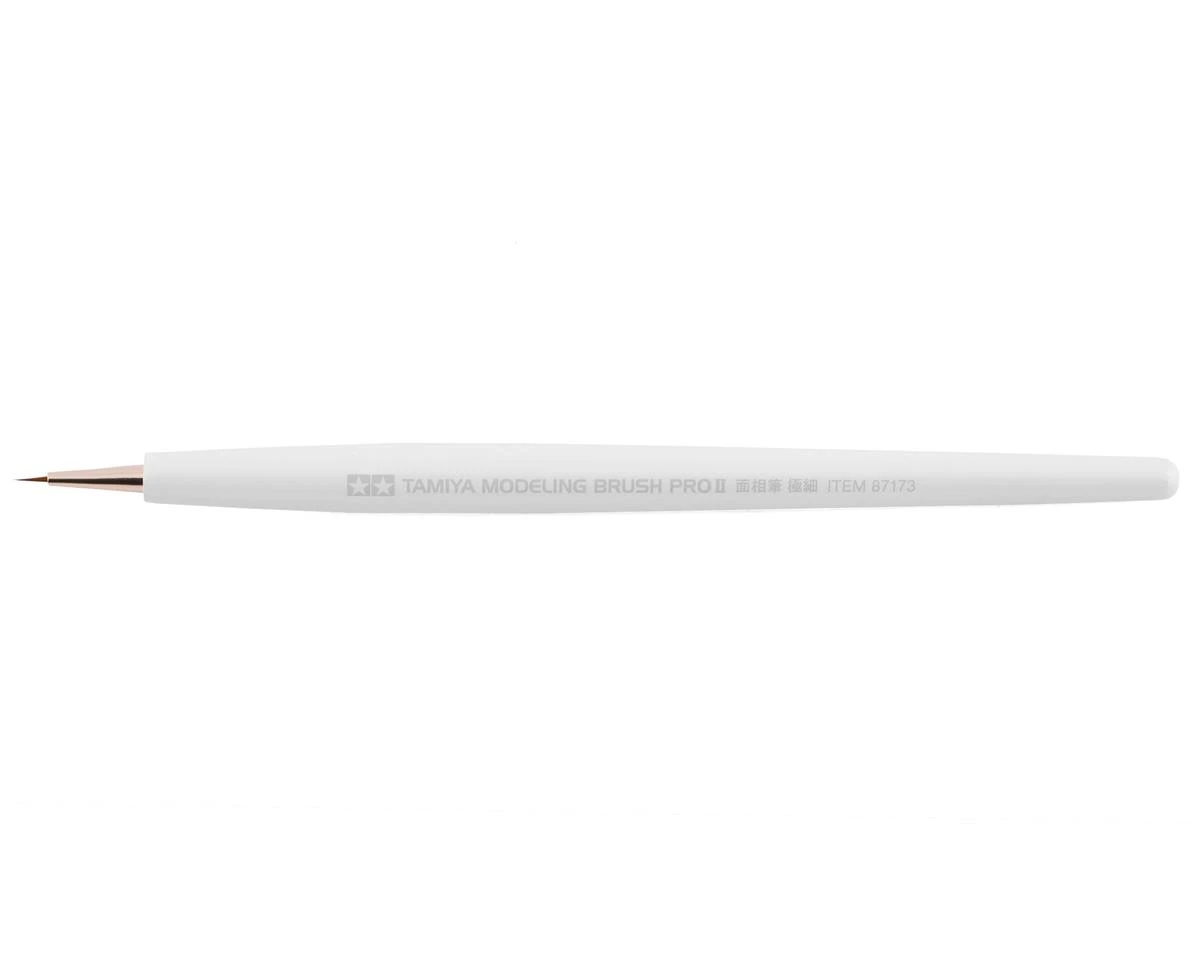 Tamiya PRO II Pointed Modeling Brushes use high-quality Kolinsky sable hair, for a fine point and excellent performance. Offering just the right amount of stiffness while still absorbing good quantities of paint, they are sure to be a must-have item for any modeler. Ergonomic handle is finished in pearl white.