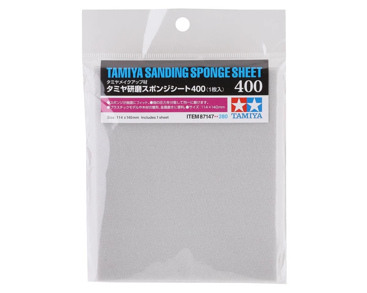 This is a Tamiya 400 Grit Sanding Sponge Sheet, a flexible sponge base with an abrasive coat of sanding sheet that is well-suited for removing protrusions on plastic models and also finishing materials such as wood and metal. The sponge’s flexibility allows the finishing of curved surfaces and hard-to-reach corners. The sheet can be easily cut into the desired shape/size using a modeling knife. This product is suitable for wet sanding use.