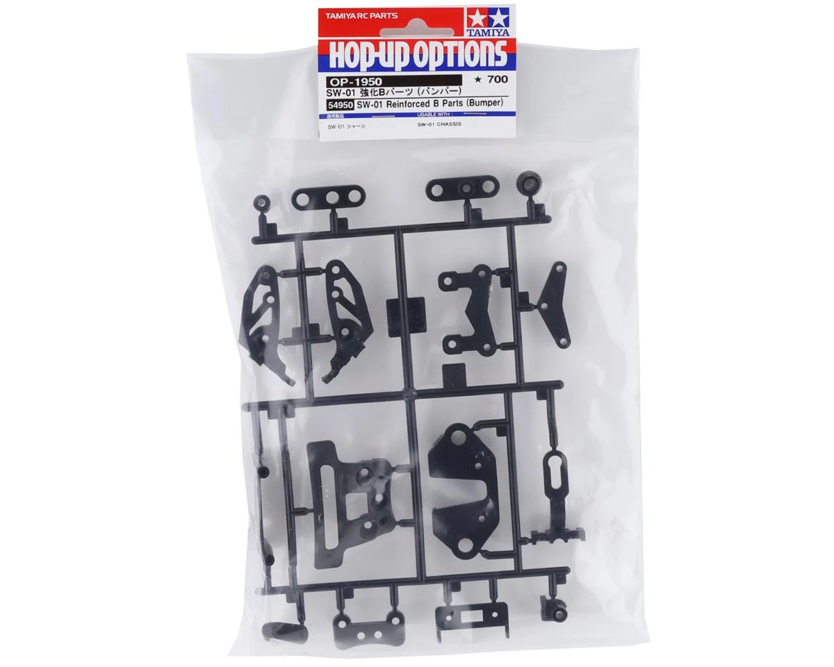 The Tamiya SW-01 Reinforced Bumper B Parts Set is an optional reinforced B parts sprue for the SW-01 chassis. They are more durable than the stock parts and offer a precise fit.