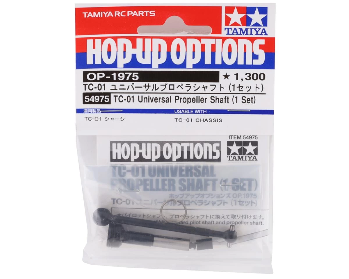 The Tamiya TC-01 Universal Propeller Shaft Set is an optional upgrade that provides smoother drive and improved efficiency compared to the stock dog bone shafts.