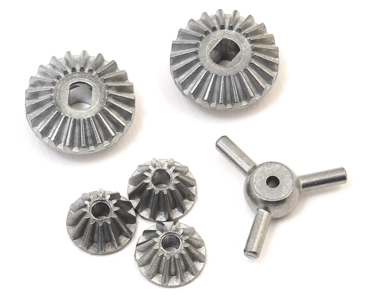 Tamiya TT-01 Bevel Gear Set. Package includes the parts needed to replace the gears and cross pin in one differential.Â