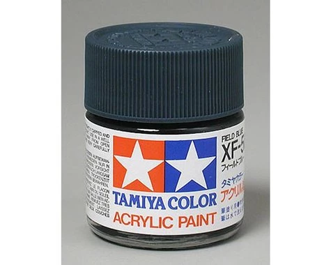 This Tamiya 23ml XF-50 Flat Field Blue Acrylic Paint is made from water-soluble acrylic resins and is excellent for either brush painting or air-brushing. These paints can be used on styrene resins, Styrofoam, wood, plus all of the common model plastics. The paint covers well, flows smoothly and can be blended easily. Prior to curing, paint can be washed away with plain water.